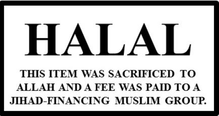 First, Muslim Brotherhood and other Muslim groups that certify meat and other items as being halal for a fee funnel some of those fees to Muslim "charities," including Hamas, Hezbollah and Holy Land Foundation that wage jihad; people who don't want to support Islamic terrorism should not buy meat or anything else bearing a halal label (see Islamophobia and Hitler & Islam).